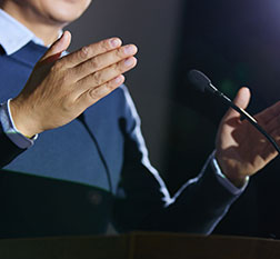 大型会议中,往往只为主持人与嘉宾配备桌面麦克风,仅供少数人发言使用。